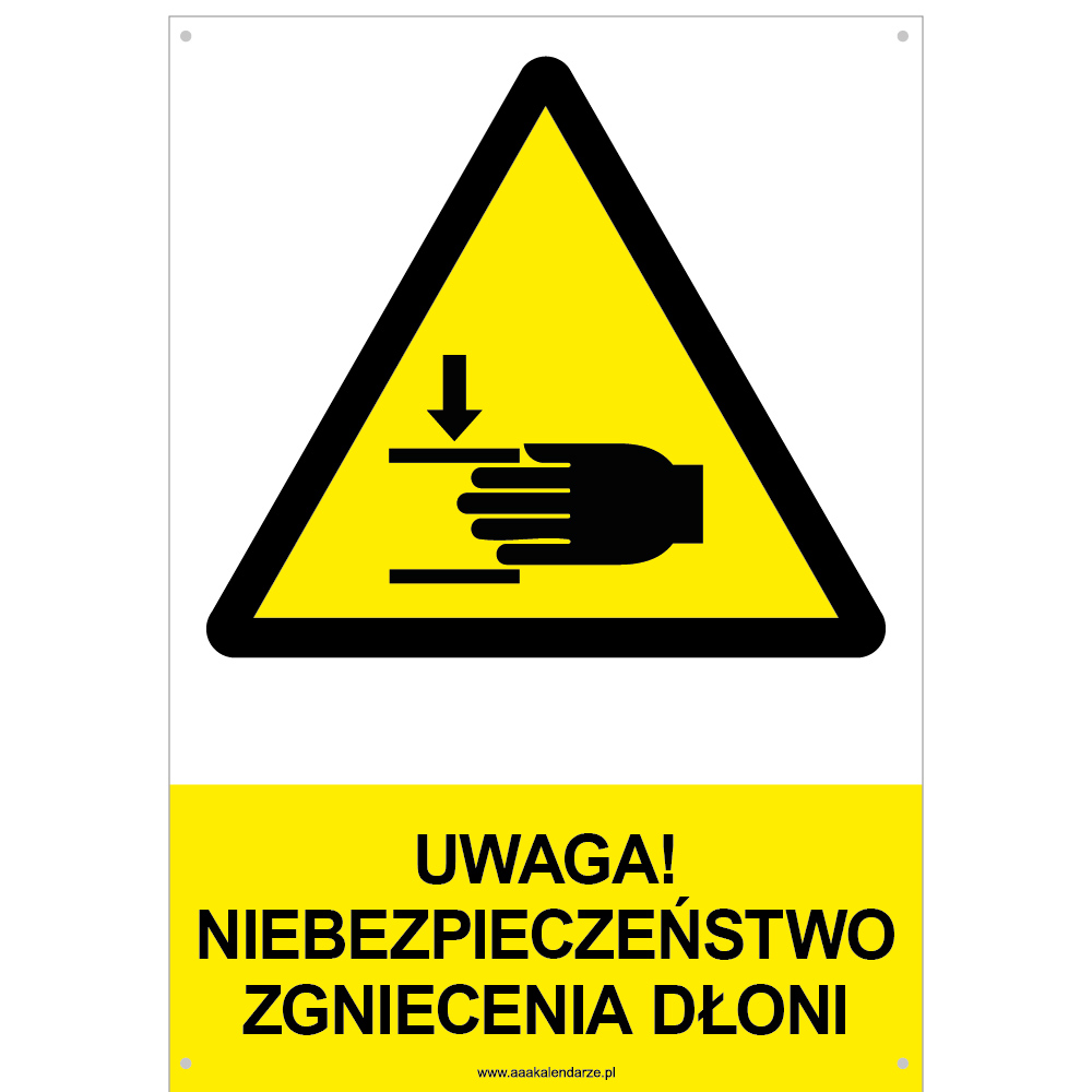 UWAGA! NIEBEZPIECZEŃSTWO ZGNIECENIA DŁONI - znak BHP z dziurkami, płyta PVC A4, 2 mm