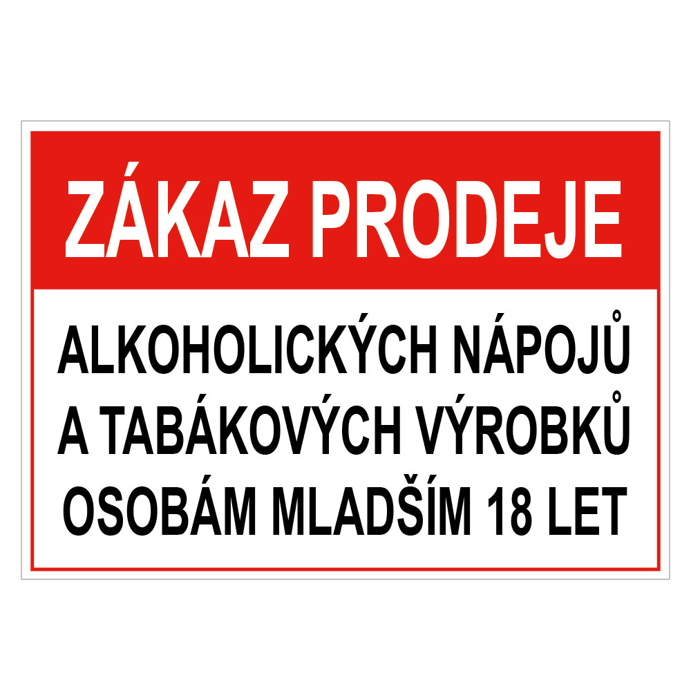 Zákaz prodeje alk. nápojů a tab. výrobků ml. 18 - bezpečnostní tabulka, plast 0,5 mm, A4
